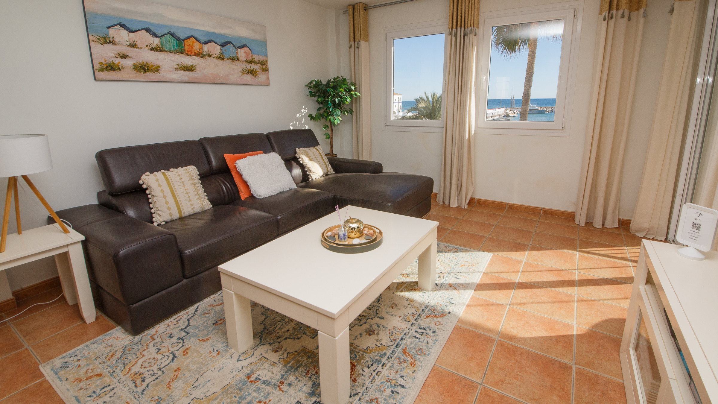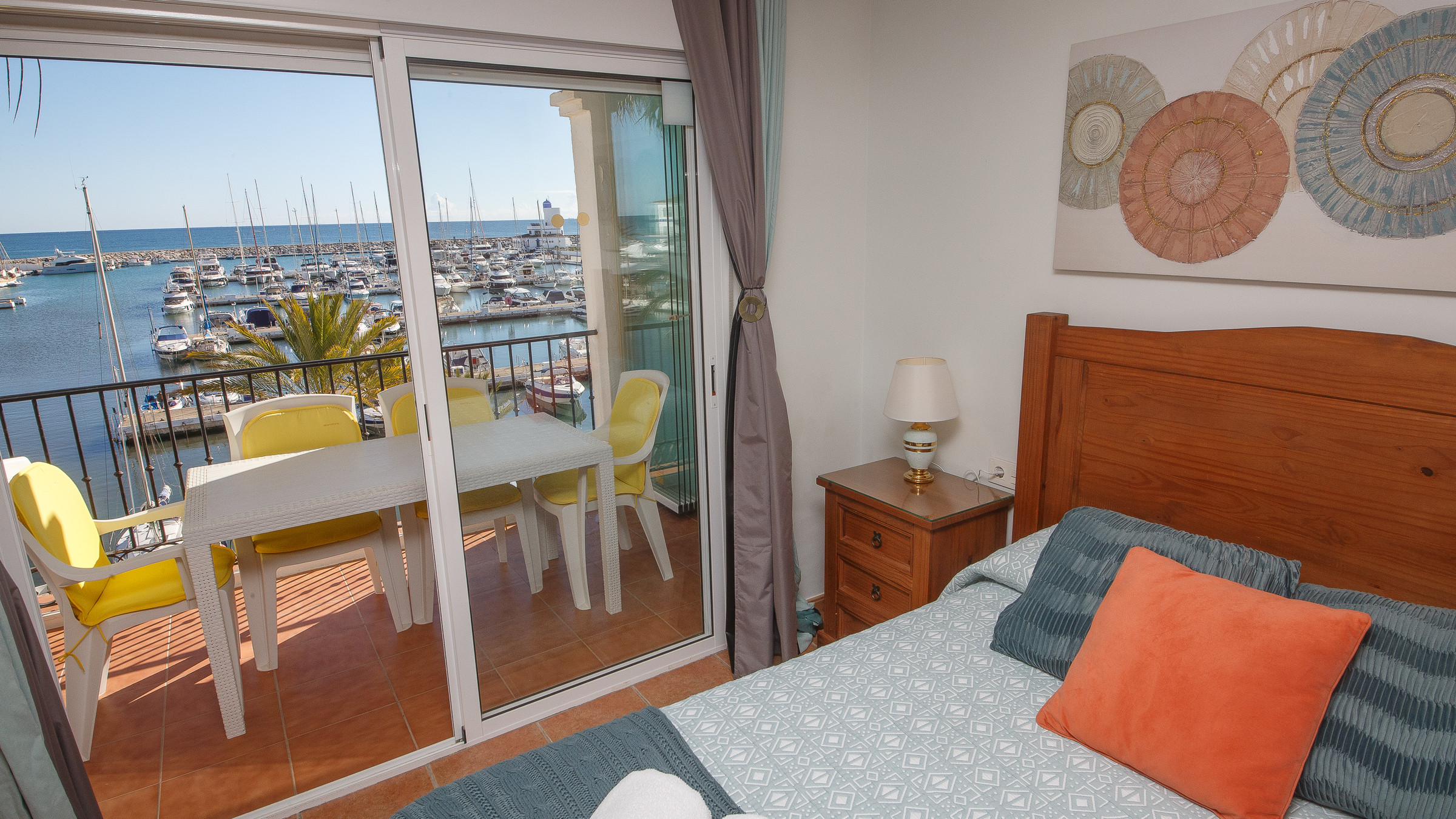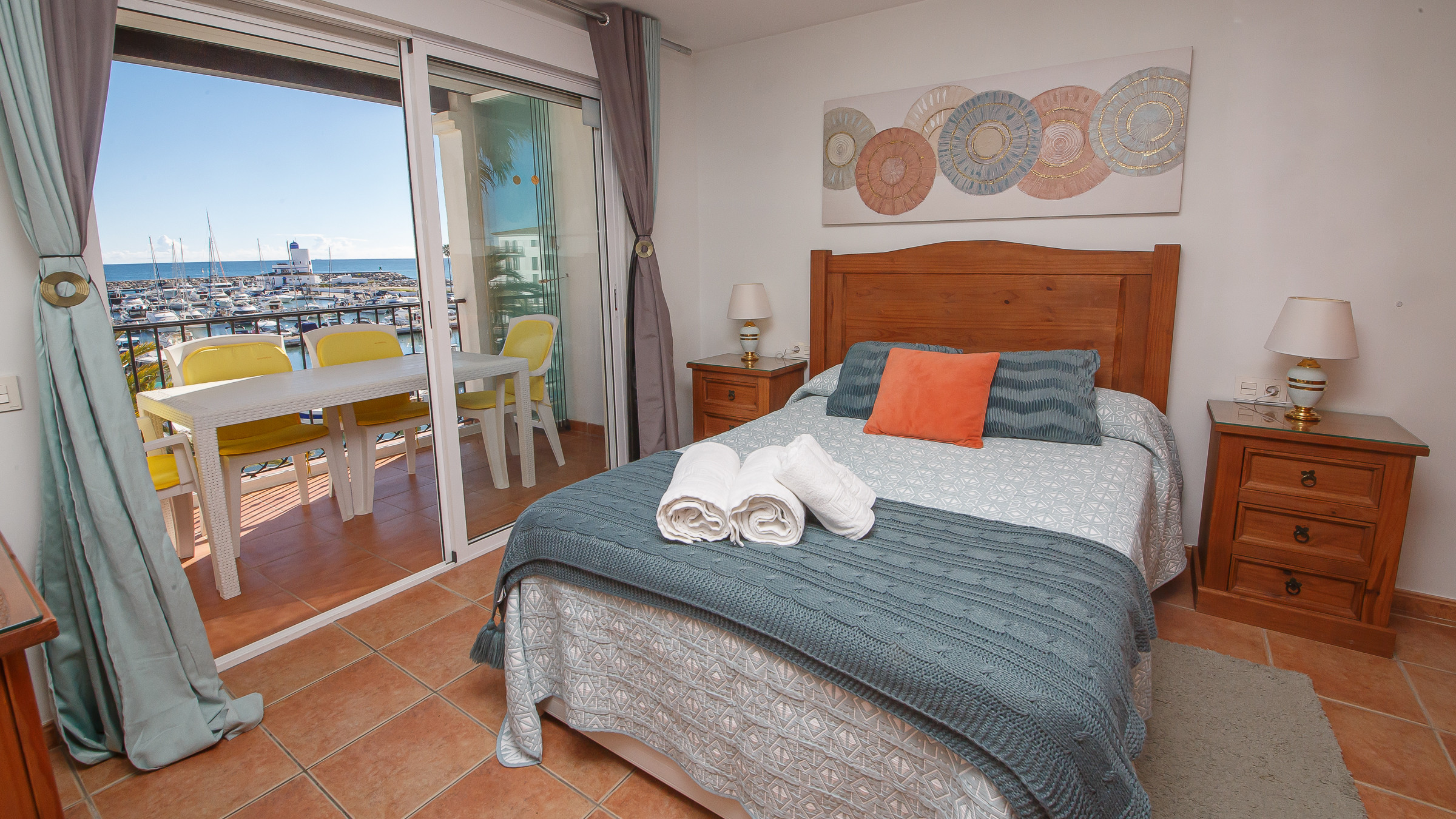 Apartamento de dos dormitorios y dos baños ubicado en el corazón de Puerto de la Duquesa. El apartamento ha sido reformado y ofrece fantásticas vistas al puerto deportivo. Dispone de WiFi, cocina americana y una terraza con cerramiento de cristal, amueblada con mesa y cuatro sillas, ideal para comer al aire libre.