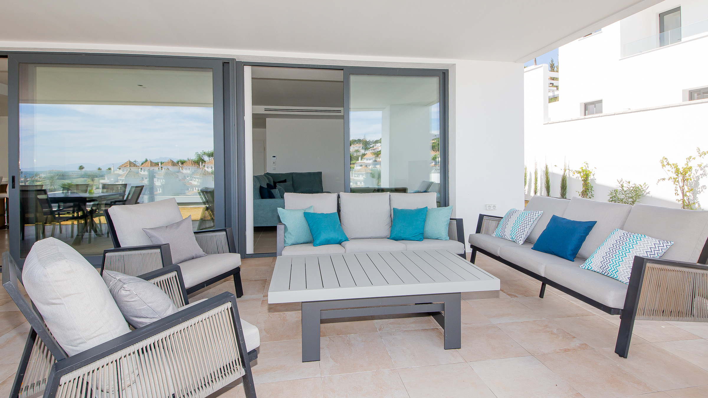 La villa está amueblada con acabados de alta calidad y cuenta con conexión Wi-Fi propia, jardín privado con piscina, una gran terraza cubierta con mobiliario de exterior de primera calidad y entrada privada con puerta automática y aparcamiento para 2 coches.