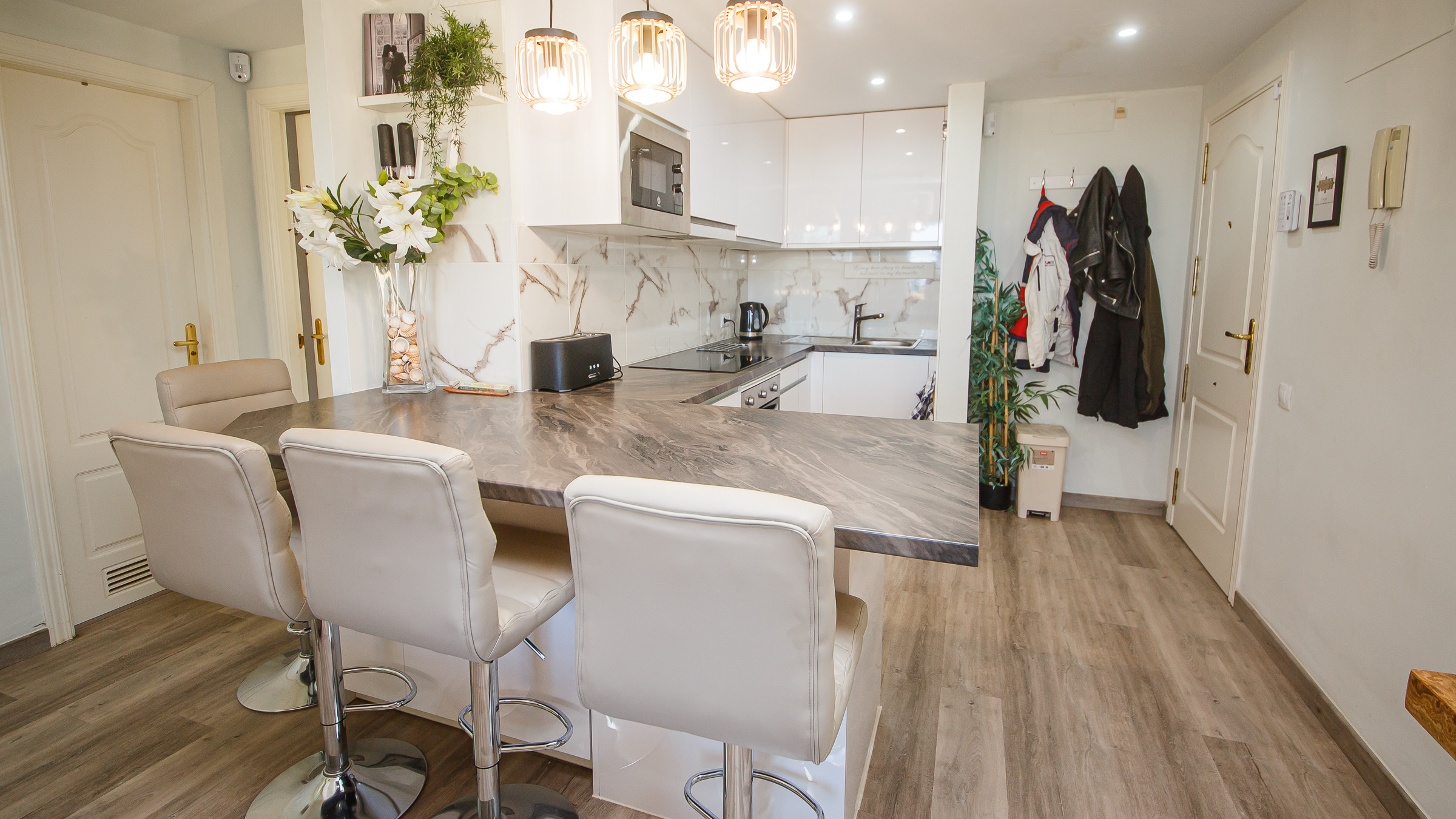 Este apartamento de dos dormitorios y dos baños ha sido renovado recientemente con un alto estándar y se ofrece completamente amueblado. La propiedad cuenta con una cocina moderna de planta abierta y una zona de estar con electrodomésticos integrados y aire acondicionado en todo el espacio.