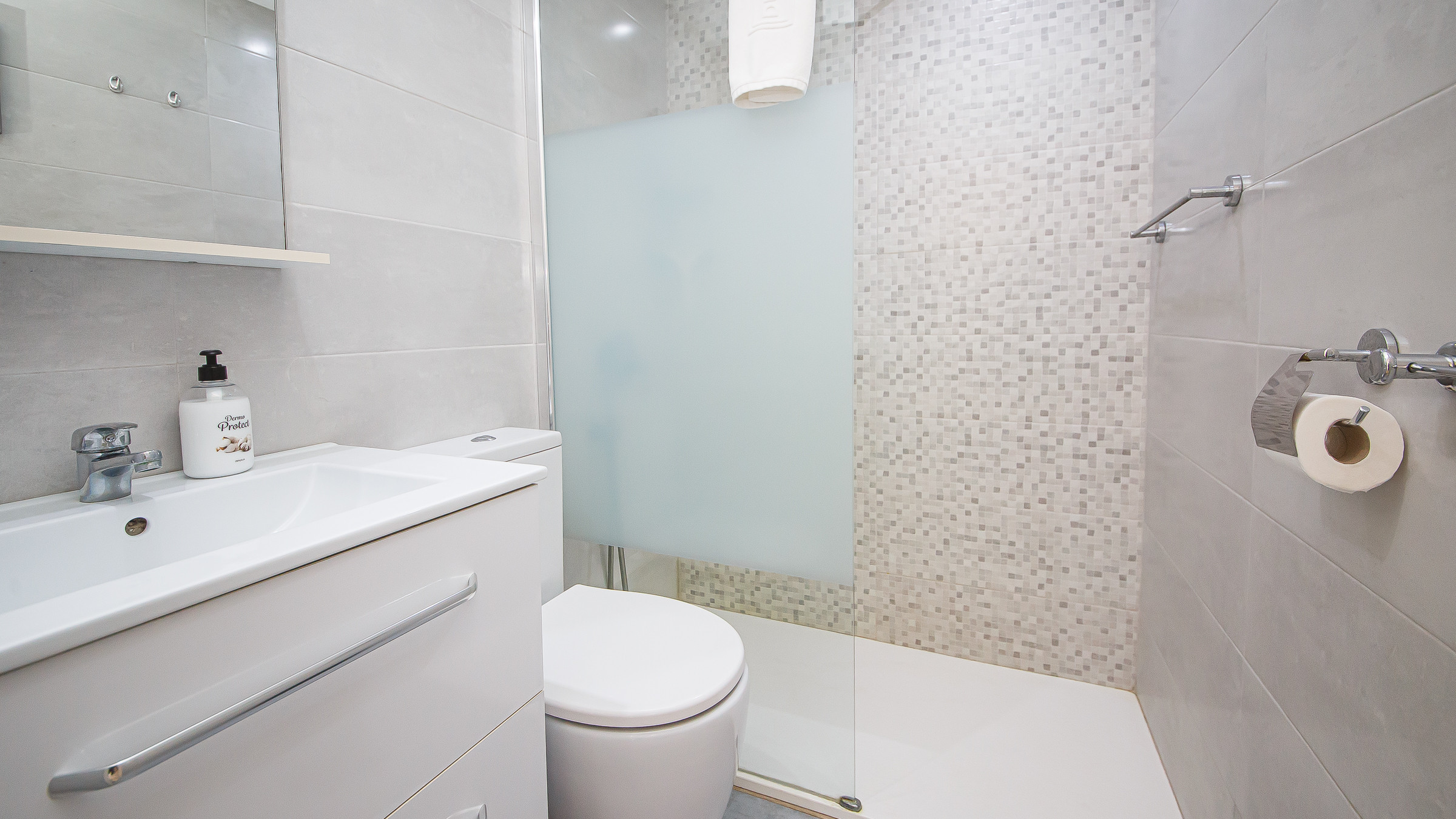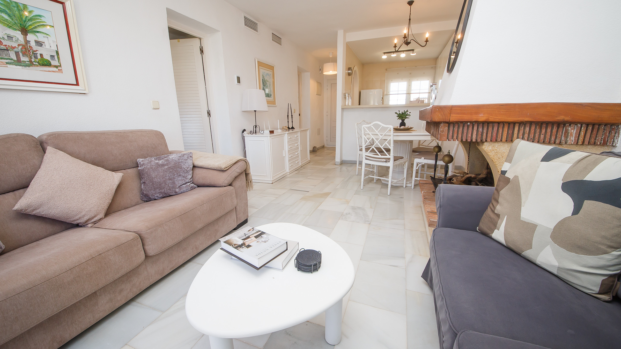 Two bedroom, two bathroom apartment, tastefully remodeled. Located in Los Flamencos, one of the original beach front complexes and very close to Puerto de la Duquesa marina and the amenities. The apartment is only a few steps walk from the beach and also benefits from its own WiFi connection. One bathroom has a walk in shower and the second bathroom has a bath with overhead shower. There are two terraces, a small one from the lounge and another larger terrace from the main bedroom that is furnished with a table and chairs and sun bed. The apartment is located on the second floor but please note that the building does not have a lift.