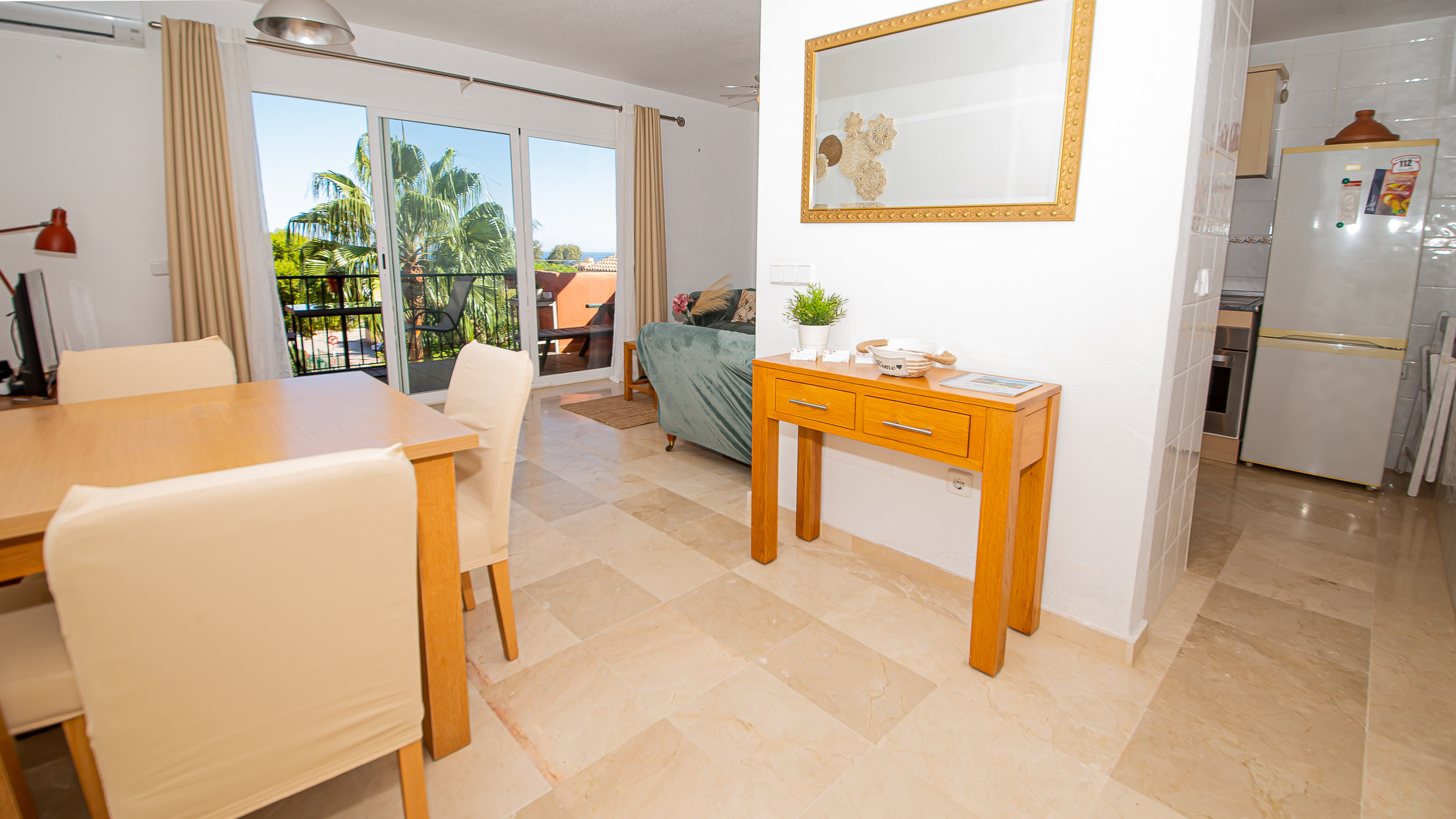 Nice one bedroom, one bathroom apartment in Manilva Gardens. Good sized lounge with patio doors leading onto the terrace, which is furnished with a table, two chairs and a sunbed.
