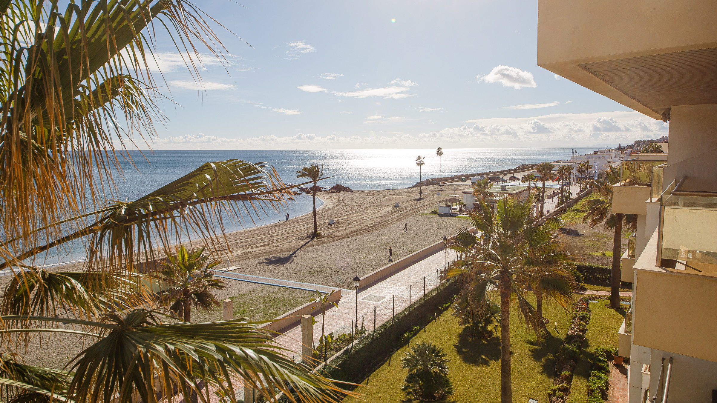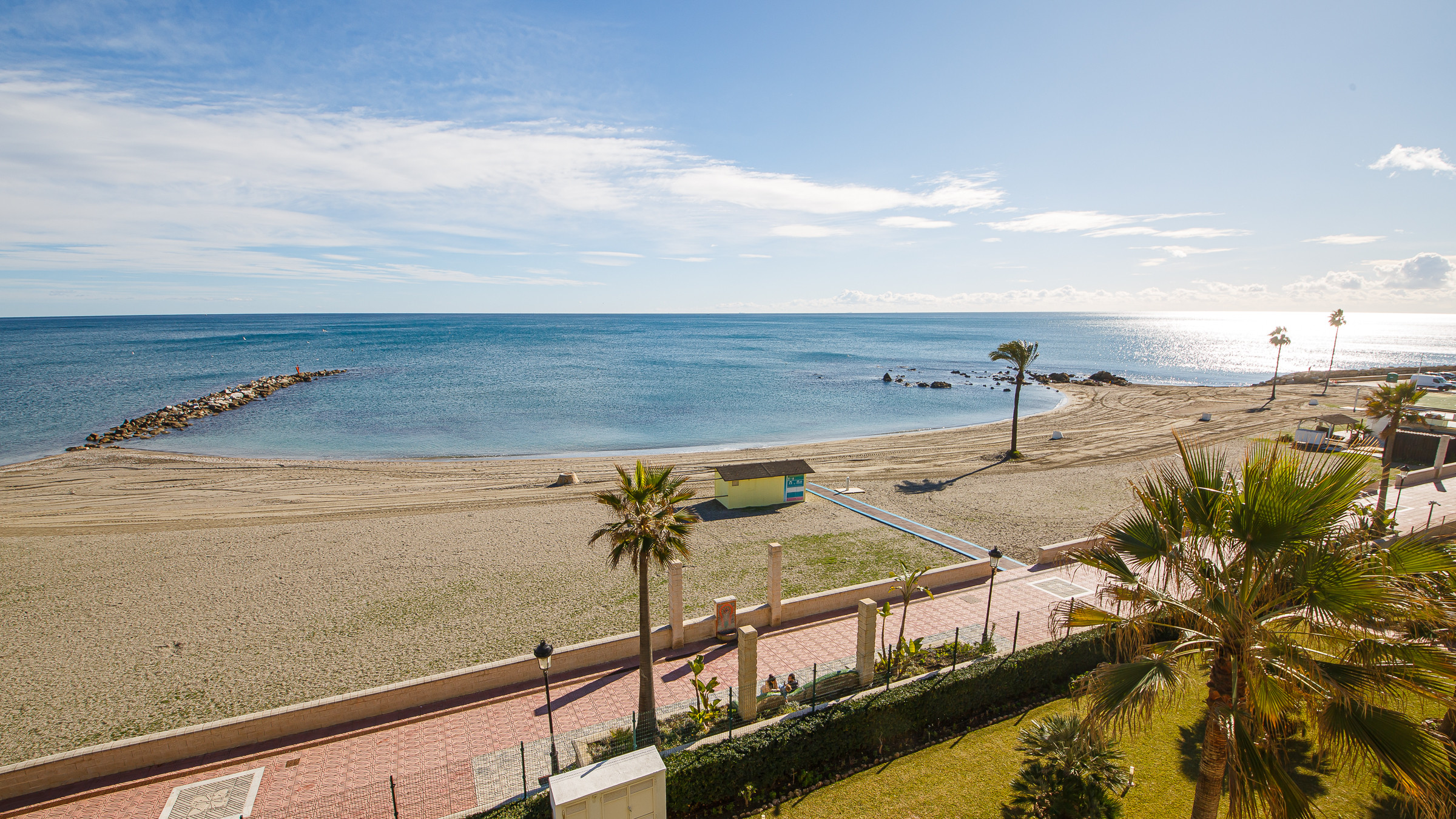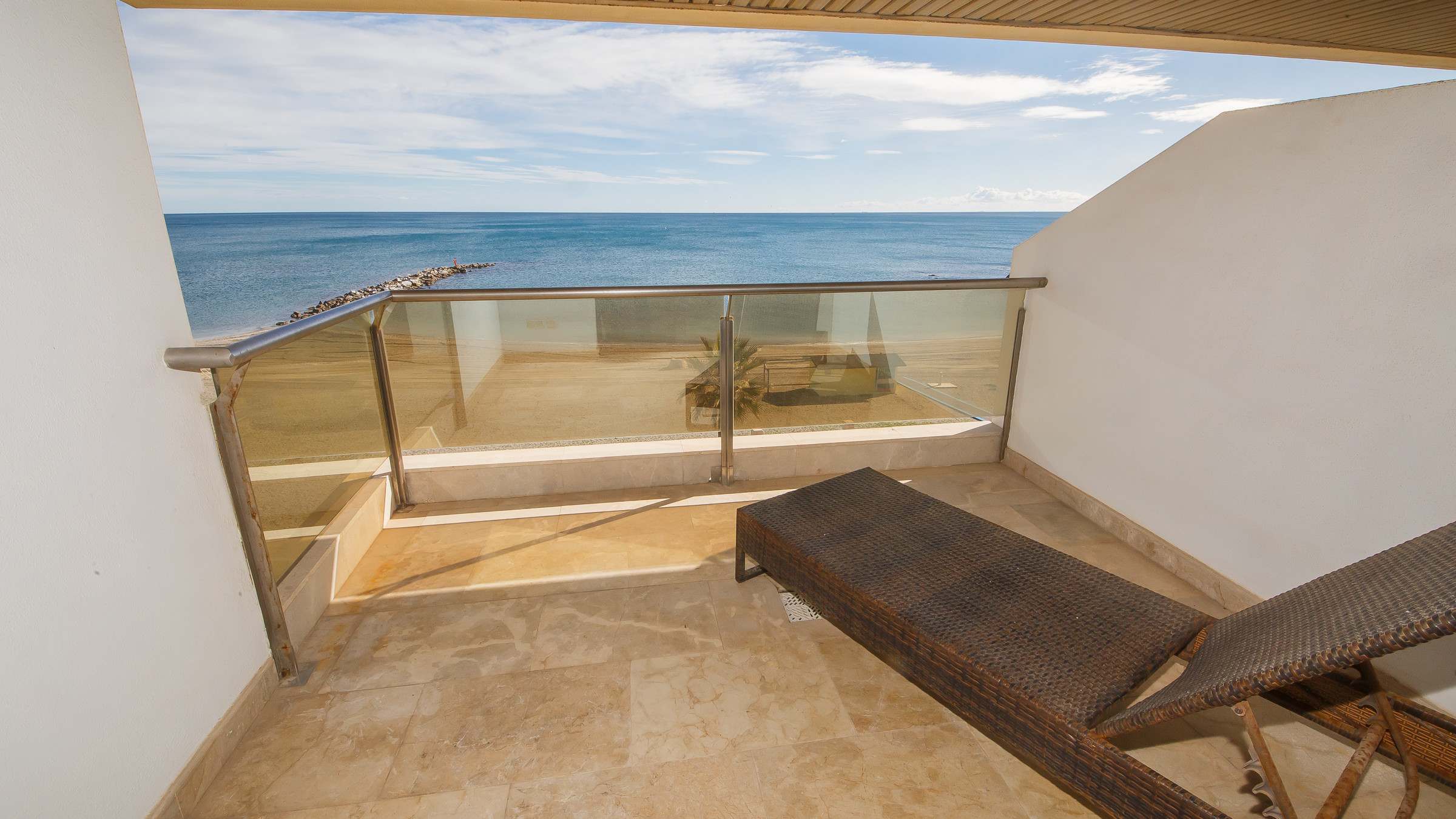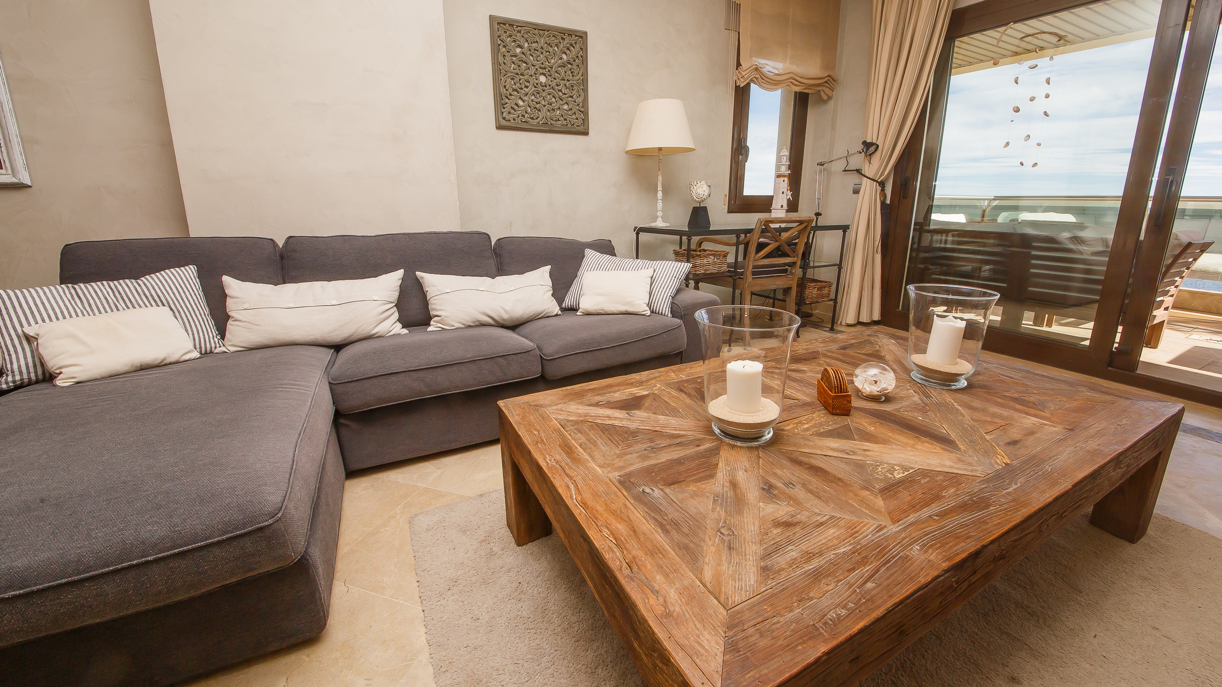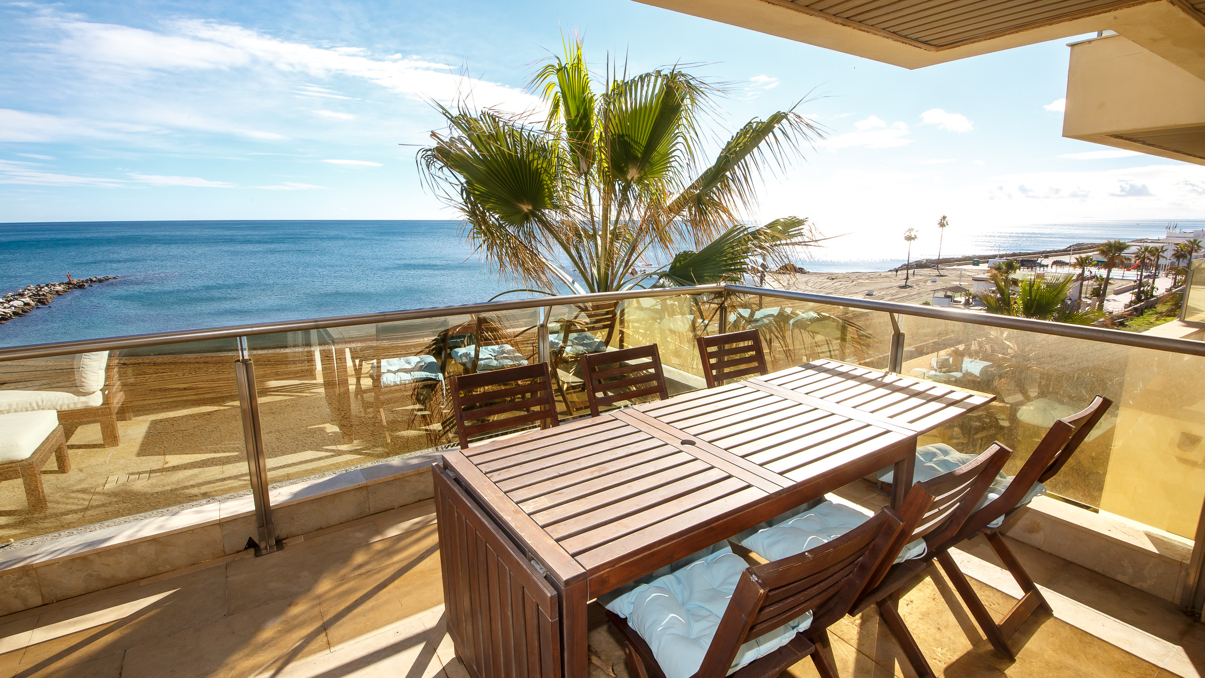 Three bedroom, two bathroom apartment in Marina del Castillo, just a short stroll along the promenade to Puerto de la Duquesa. Two terraces with incredible sea views. The main one is accessed from the living room and is furnished with an outdoor sofa set, table and six chairs. The secondary terrace has access from the main bedroom and has a sun lounger. The apartment has air conditioning throughout, its own WiFi connection and an underground parking space in the same building.