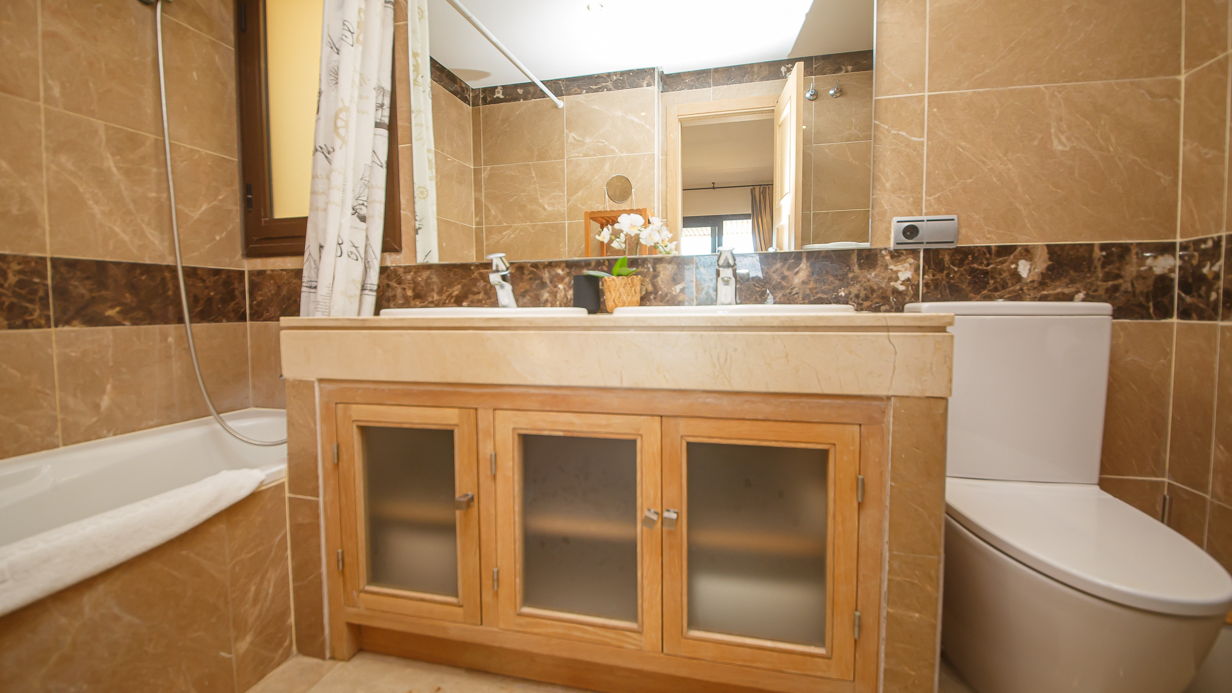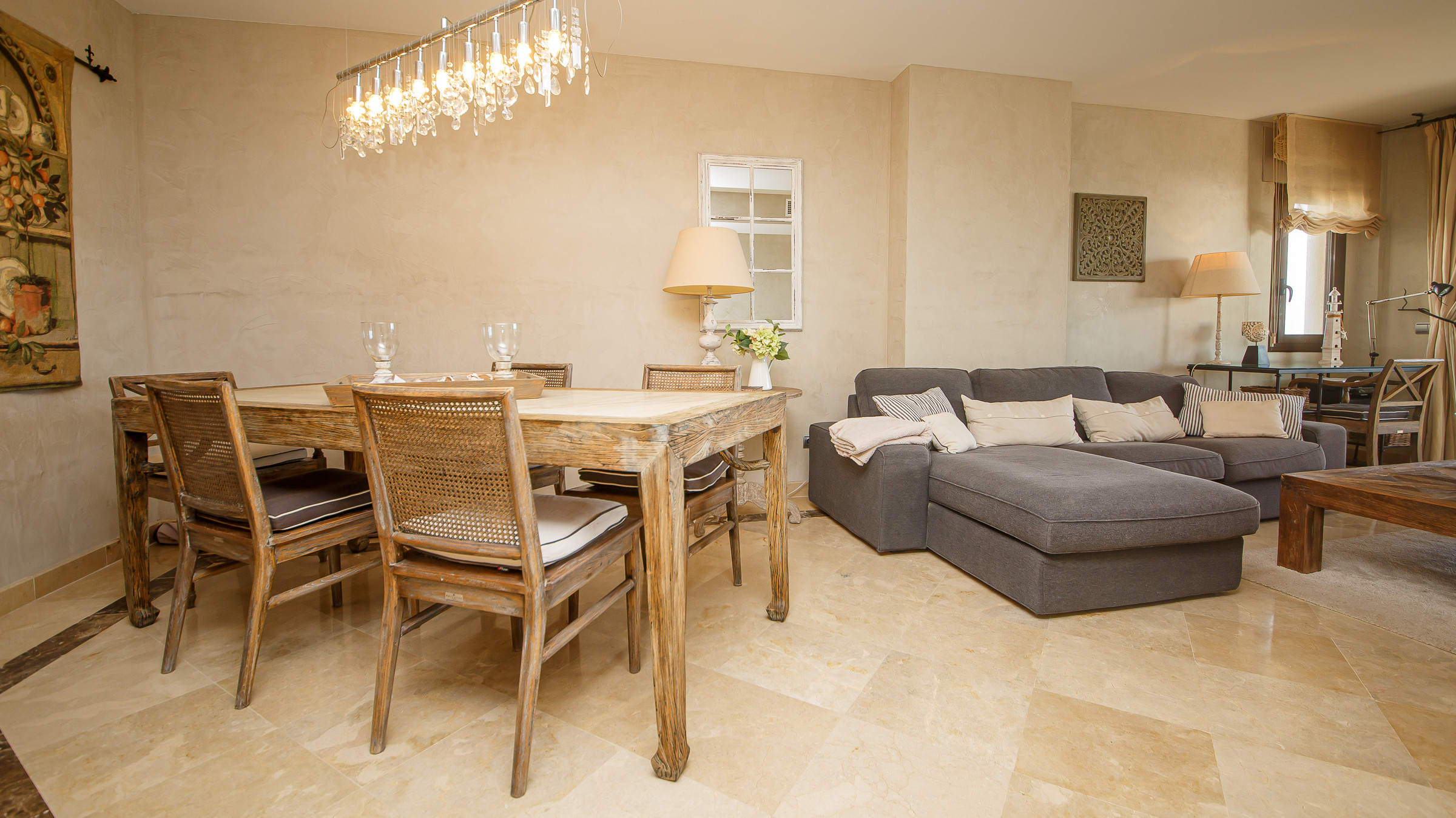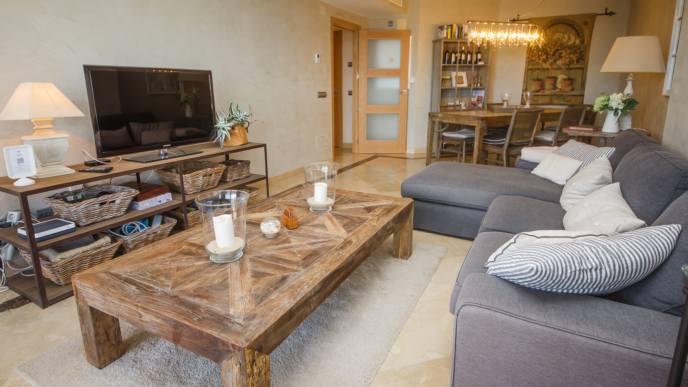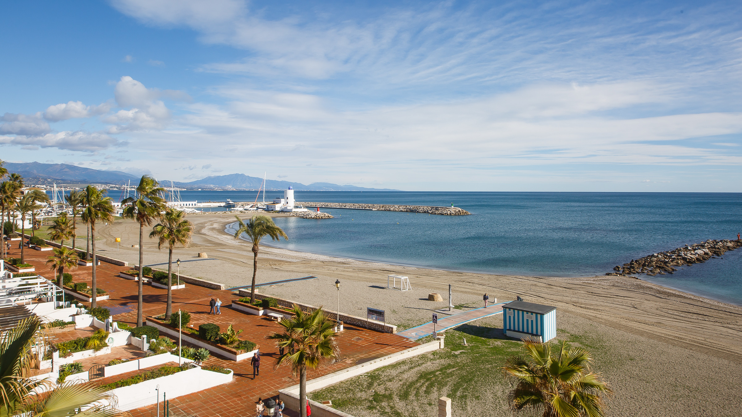 Three bedroom, two bathroom apartment in Marina del Castillo, just a short stroll along the promenade to Puerto de la Duquesa. Two terraces with incredible sea views. The main one is accessed from the living room and is furnished with an outdoor sofa set, table and six chairs. The secondary terrace has access from the main bedroom and has a sun lounger. The apartment has air conditioning throughout, its own WiFi connection and an underground parking space in the same building.