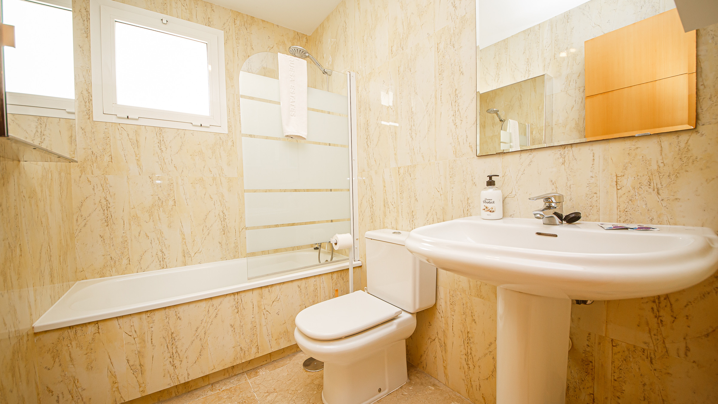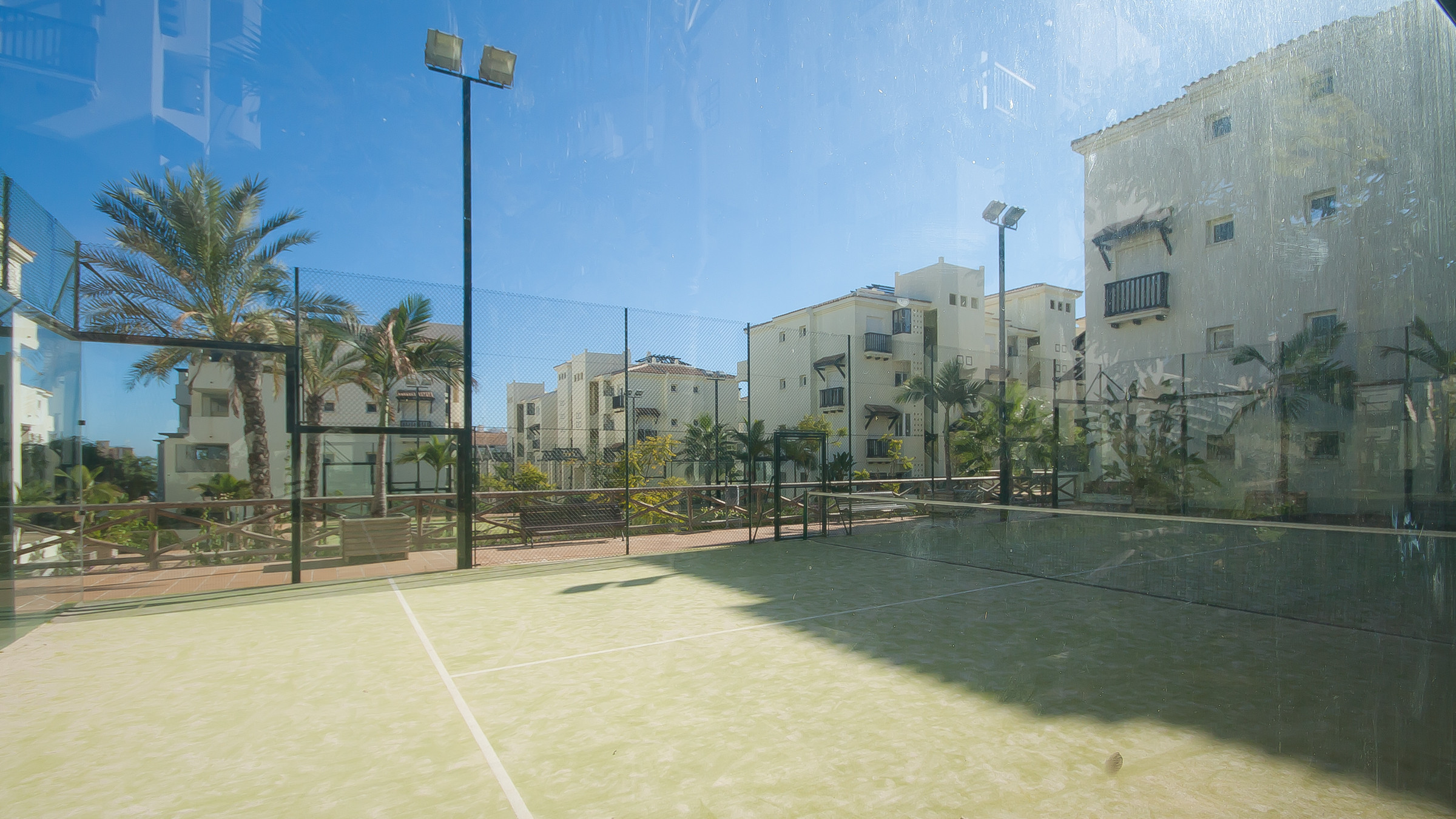 The garden with 4 pools, 2 pádel courts and the free garage space can be reached by lift. Facilities include air conditioning, terrace and free Wi-Fi access and TV. There is a living room, 2 bedrooms, a fully equipped kitchen and 2 bathrooms/WC.