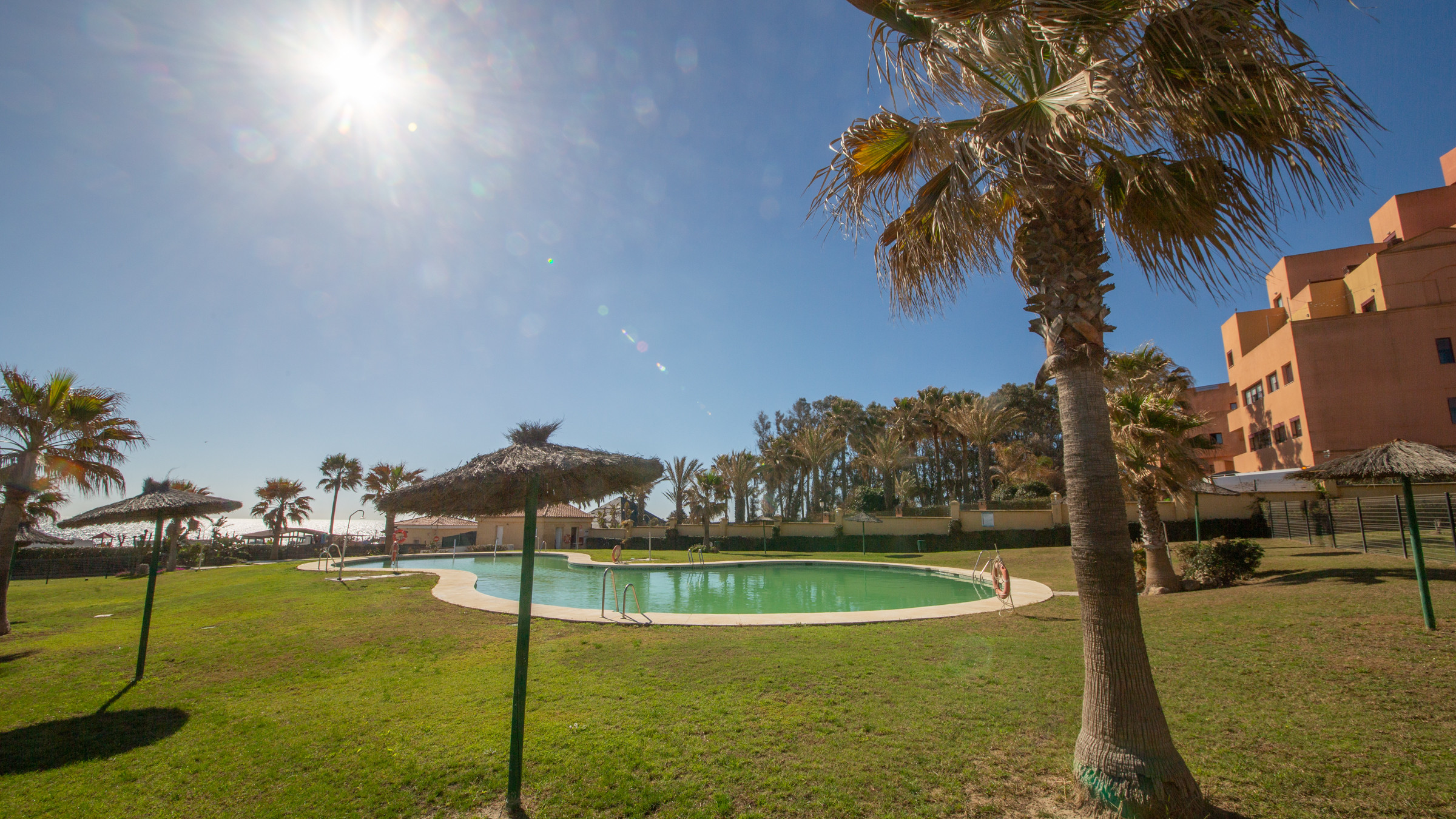 The complex has access to a communal swimming pool and private access to the beach, located just a few minutes' walk away.
