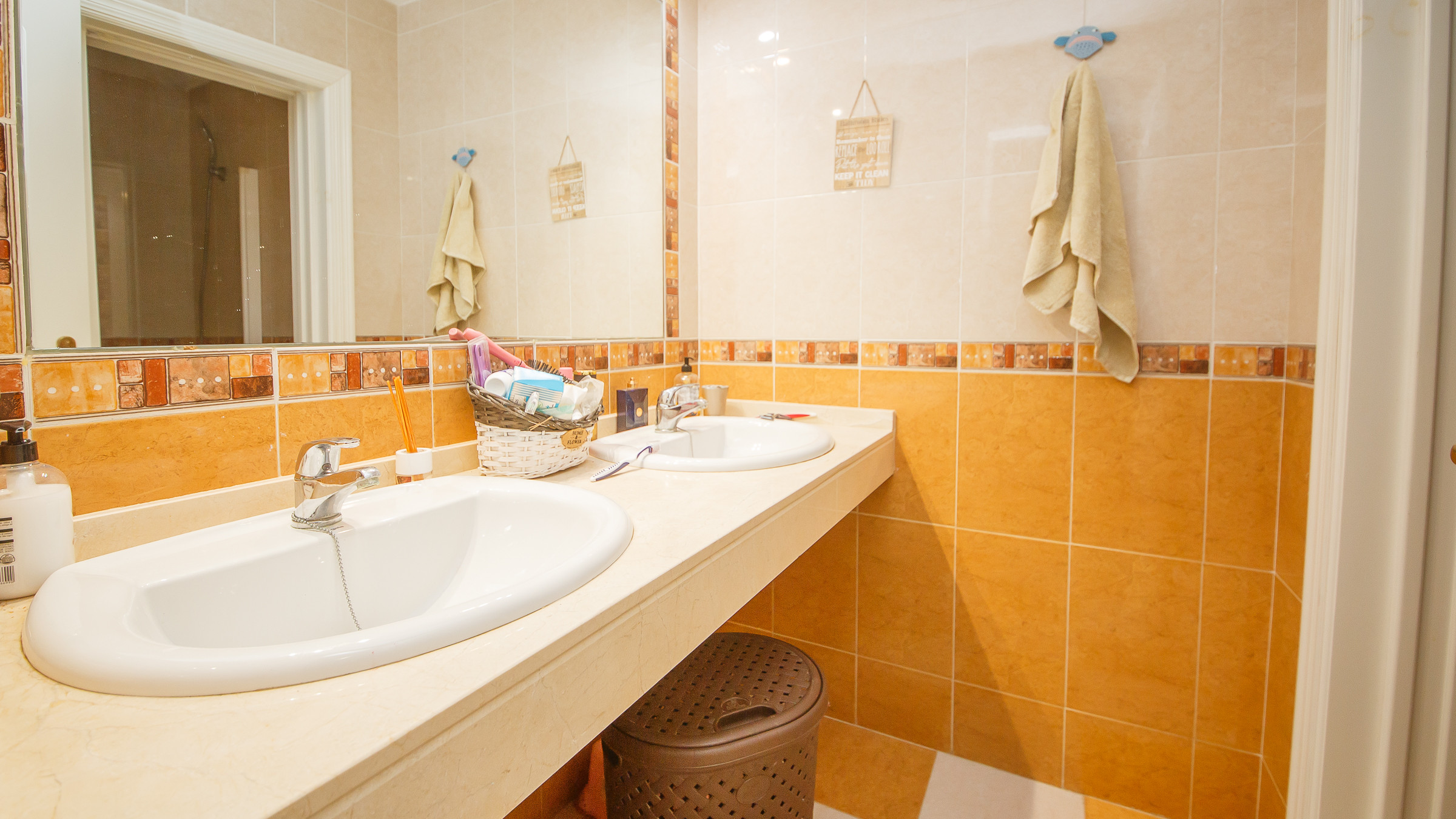 Inside, the home includes a fully fitted kitchen, generous living areas, and two well-appointed bedrooms, each with its own bathroom for added convenience.