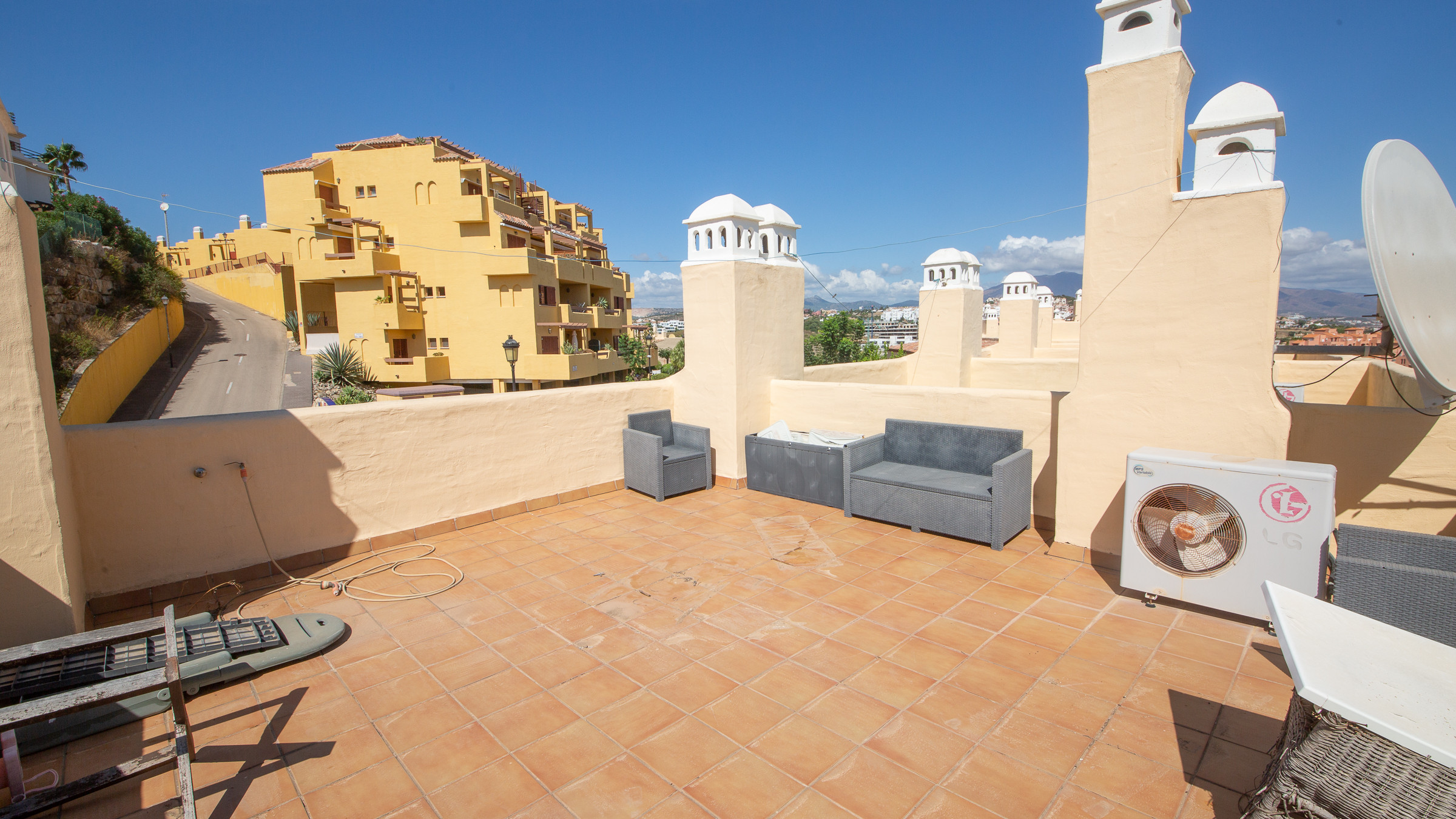 The accommodation is equipped with the following items: terrace, washing machine, air conditioning throughout the house, communal swimming pool, open-air parking the same building.